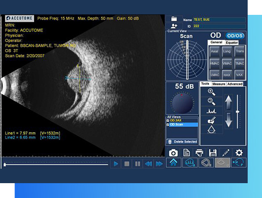 A szemészeti ultrahangvizsgálat egy gyors, fájdalommentes diagnosztikai módszer, amely hanghullámok segítségével képez térképet a szemgolyó belső szerkezetéről. Különösen akkor van kiemelt jelentősége, amikor a szem belső területei más módon nem vizsgálhatók pl. üvegtesti homályok, vérzések, daganatok . A vizsgálat nemcsak statikus képet ad, hanem a szem mozgása közben is lehetőség van az elváltozások dinamikus megfigyelésére.